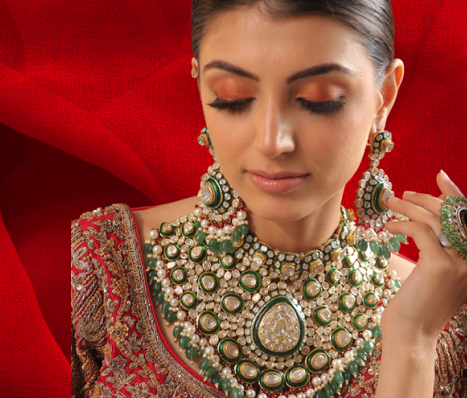 Regal Emerald Pearl Tiers Necklace Set- Regular price