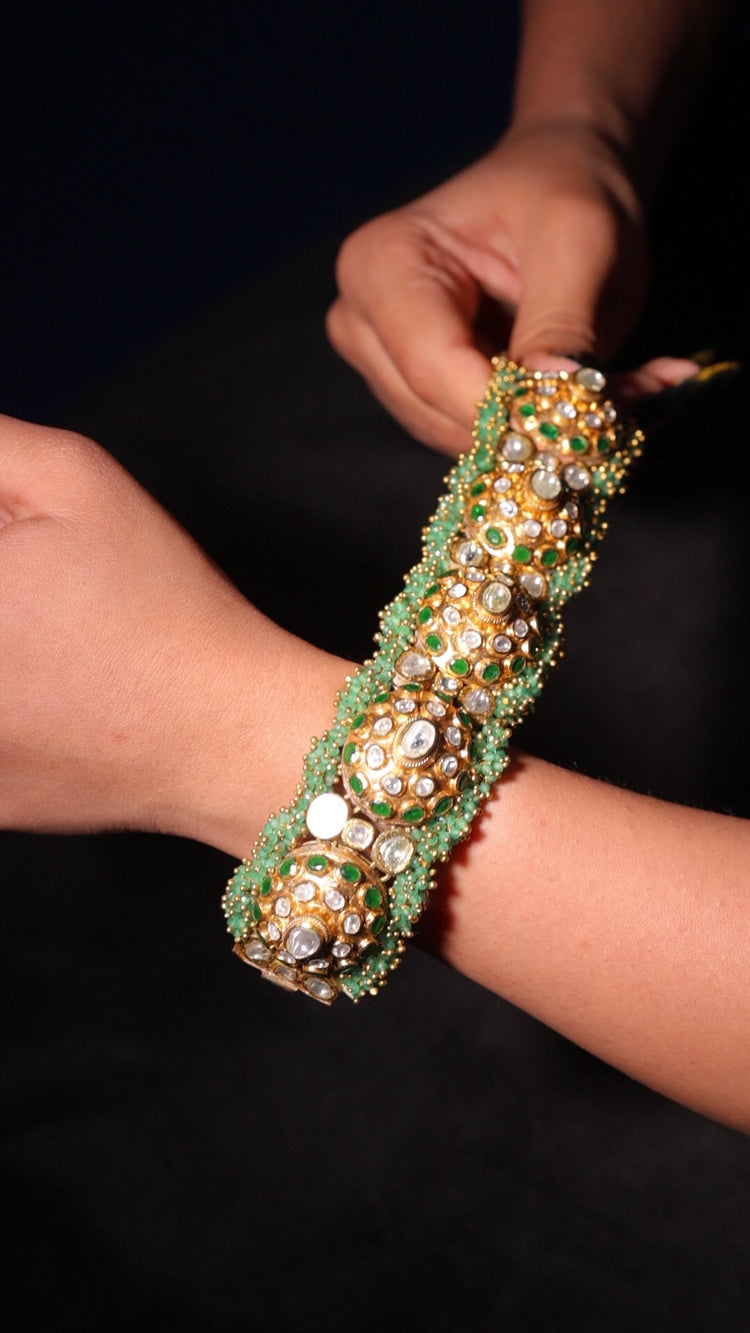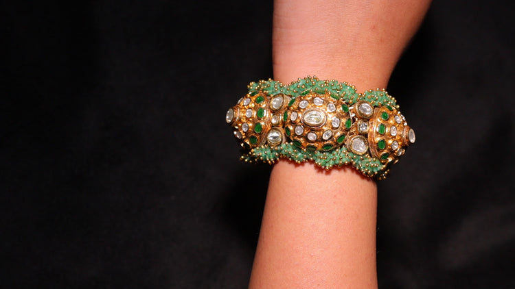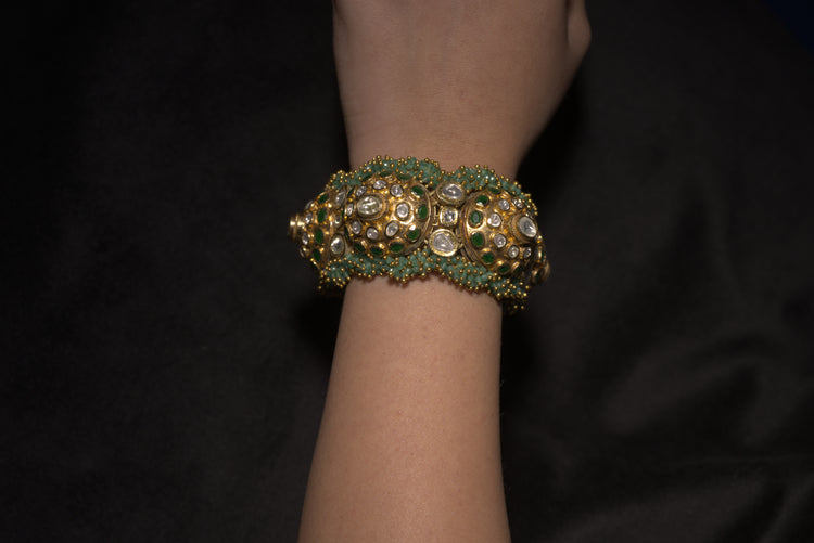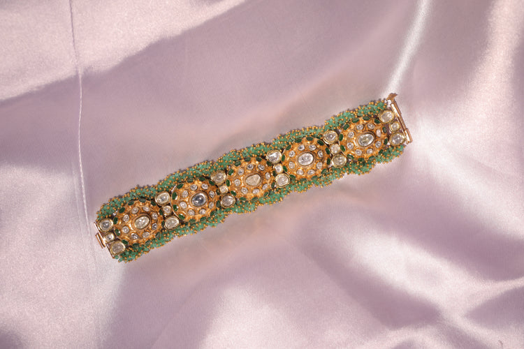 Emerald Dome Polki Hathphool Bracelet
