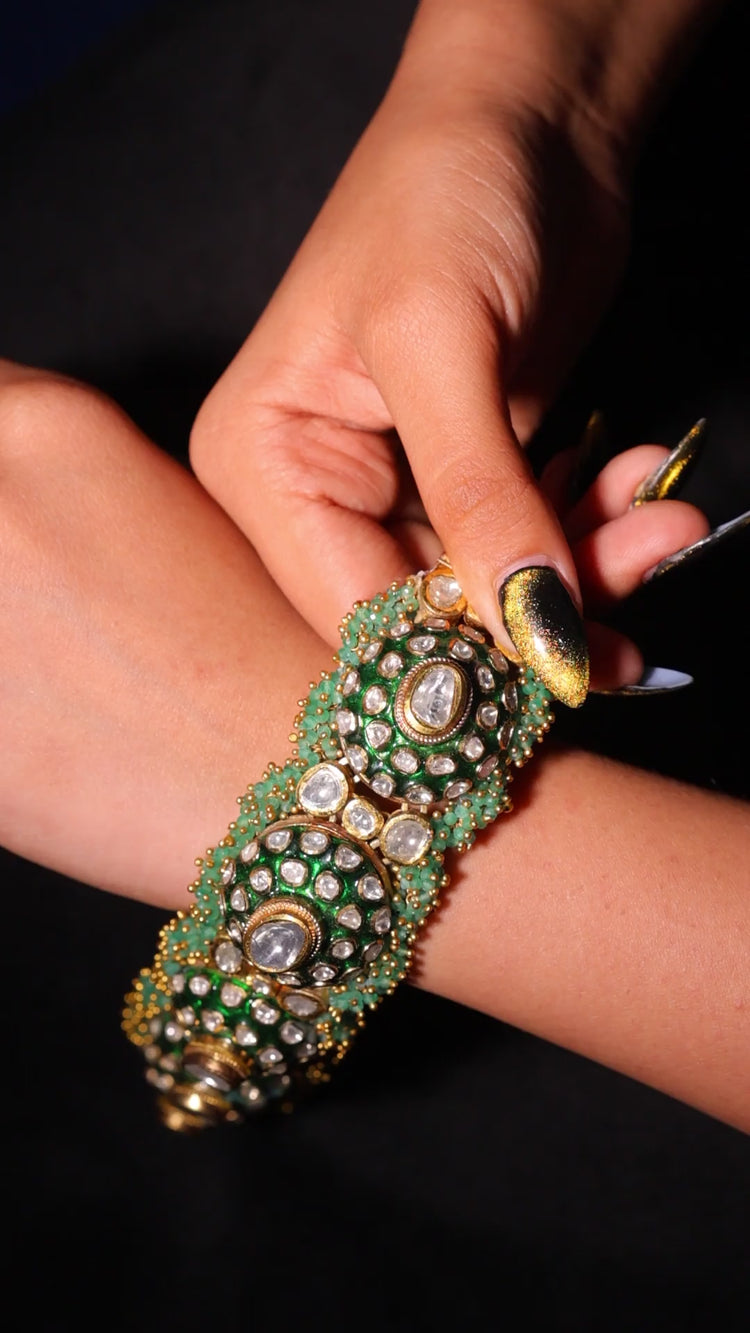 Floral Polki & Emerald Bracelet/Choker