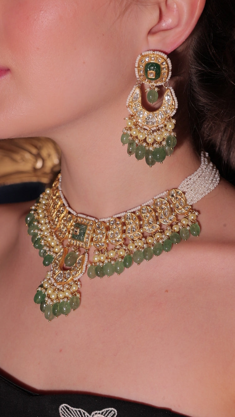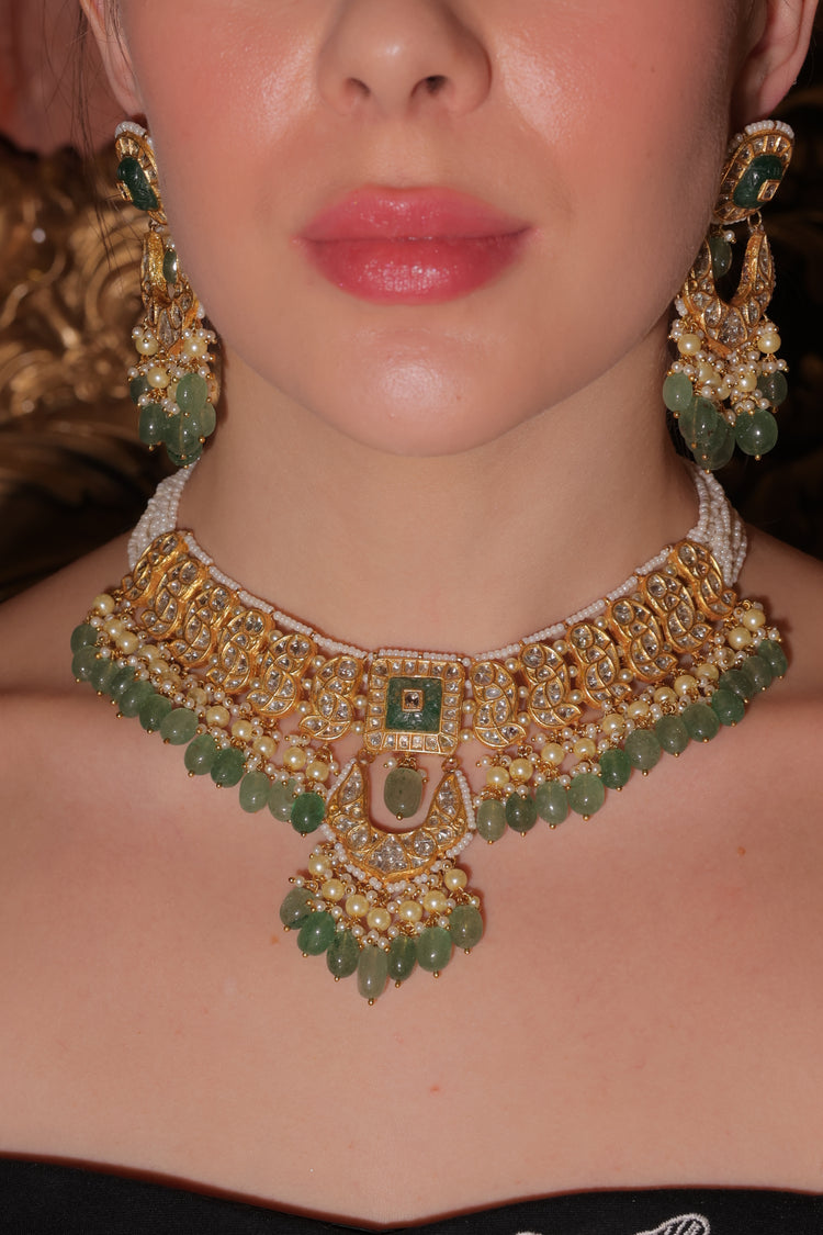 Crafted in 22kt gold with natural polki diamonds and gemstones. Certified jewellery with lifetime buyback/exchange * (T&C)