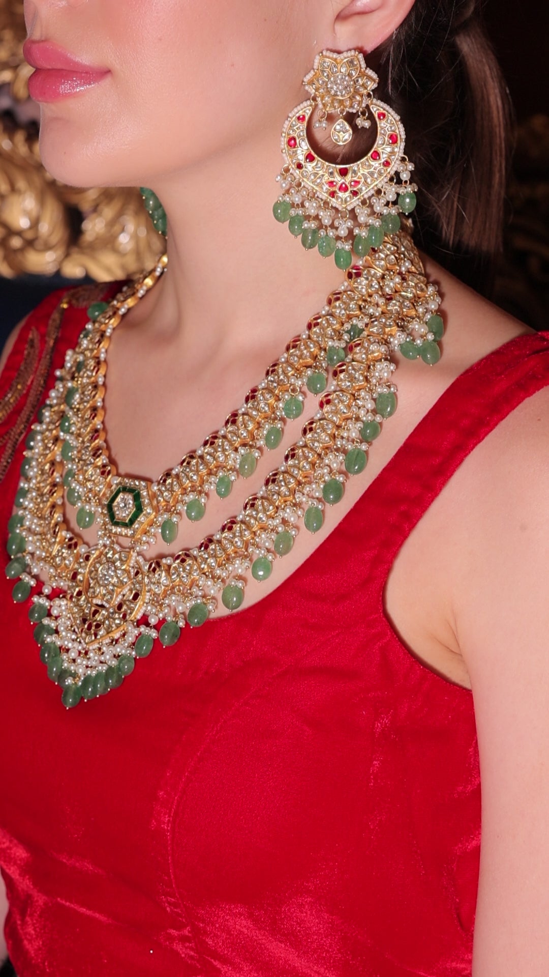 Crafted in 22kt gold with natural polki diamonds and gemstones. Certified jewellery with lifetime buyback/exchange * (T&C)