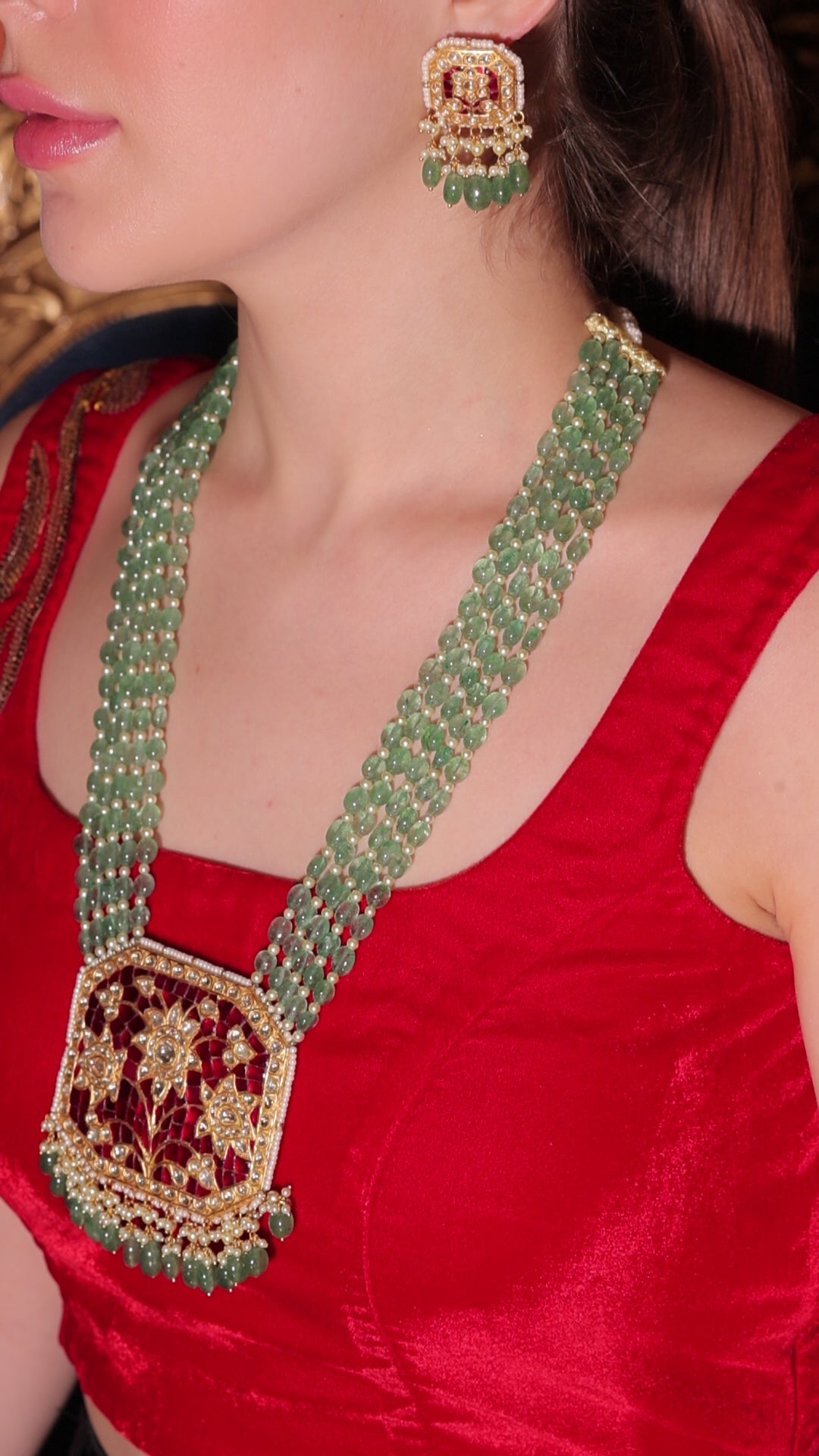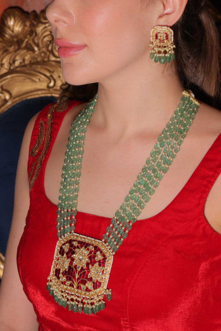 Crafted in 22kt gold with natural polki diamonds and gemstones. Certified jewellery with lifetime buyback/exchange * (T&C)