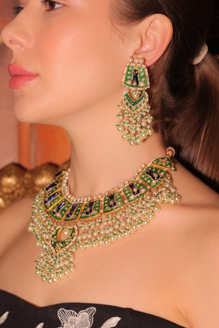 Crafted in 22kt gold with natural polki diamonds and gemstones. Certified jewellery with lifetime buyback/exchange * (T&C)