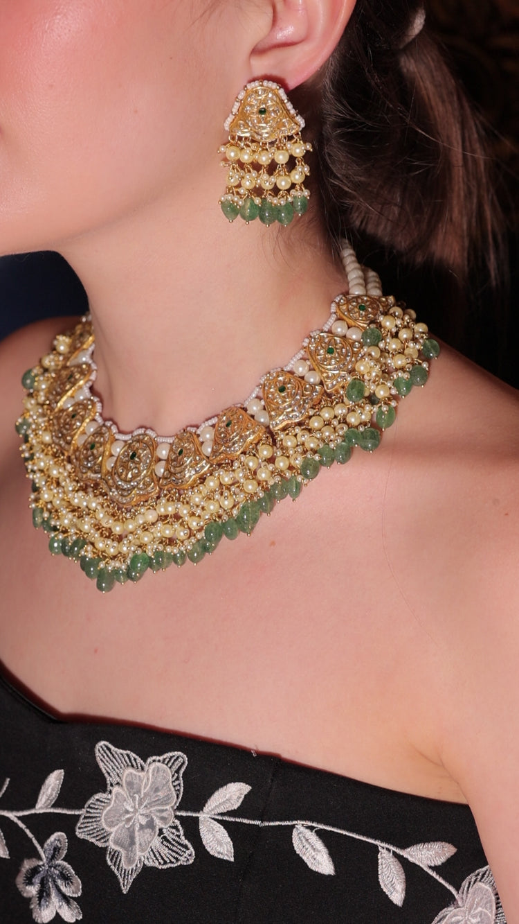 Crafted in 22kt gold with natural polki diamonds and gemstones. Certified jewellery with lifetime buyback/exchange * (T&C)