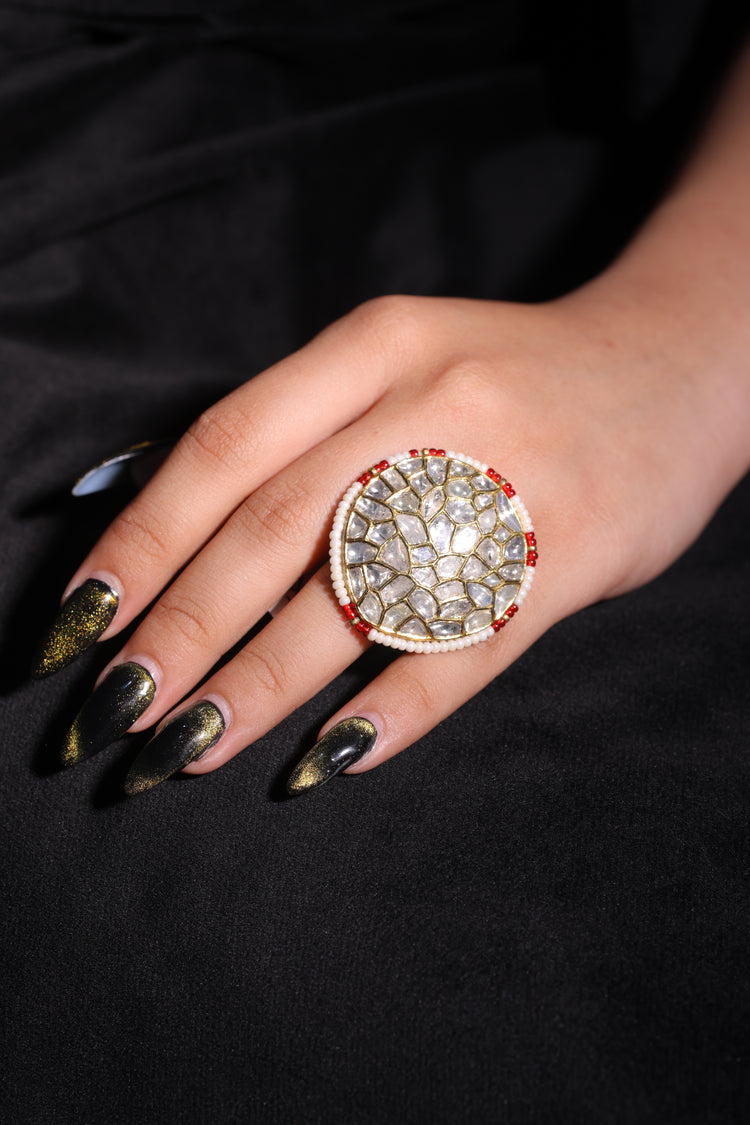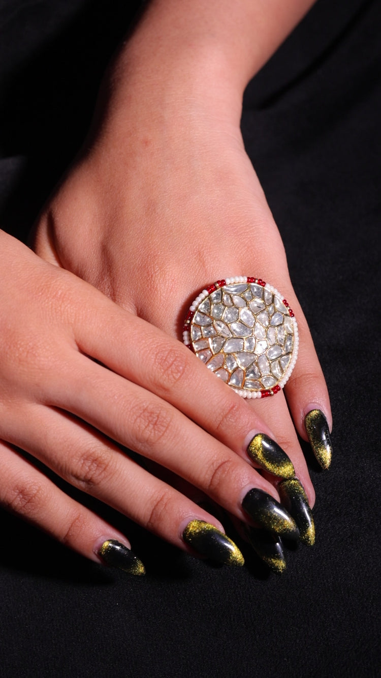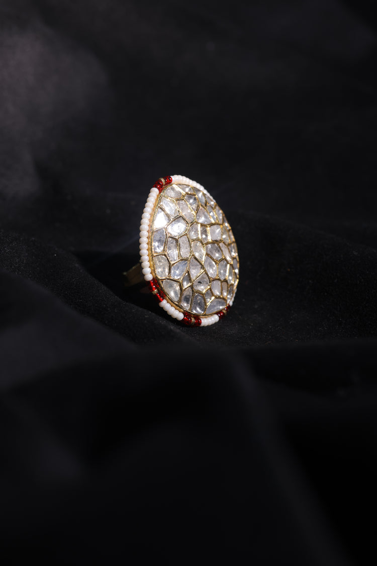 Crafted in 18-carat gold, the Polki Ring showcases traditional uncut diamond-style stones in a timeless setting. A perfect blend of heritage and elegance, designed to make a subtle yet regal statement.